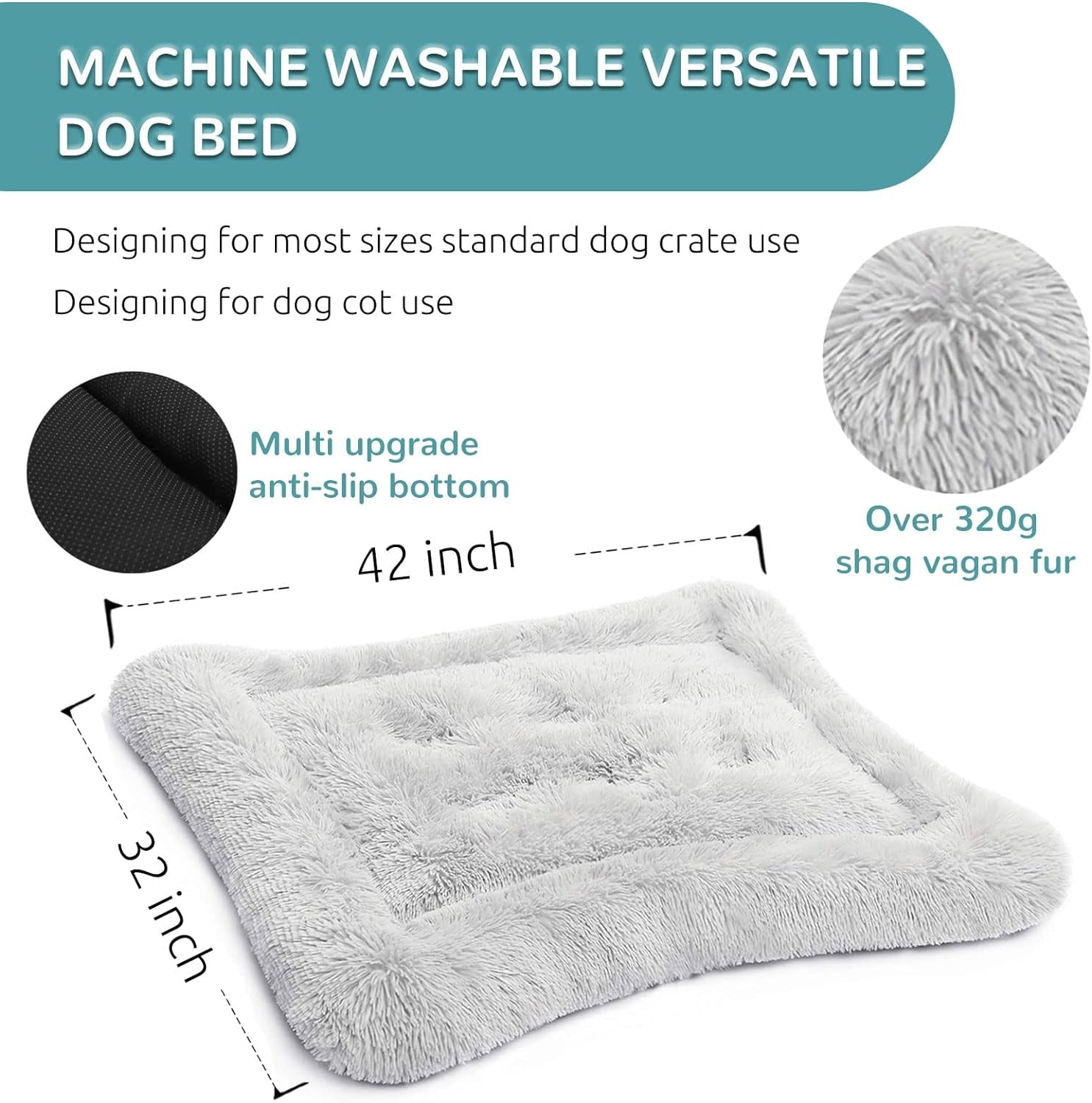 Soft & Cosy Dog Crate Pad: A thick vegan fur dog mat provides a comfortable resting surface for your pet. Perfect for use in crates, kennels, or as a standalone bed.
