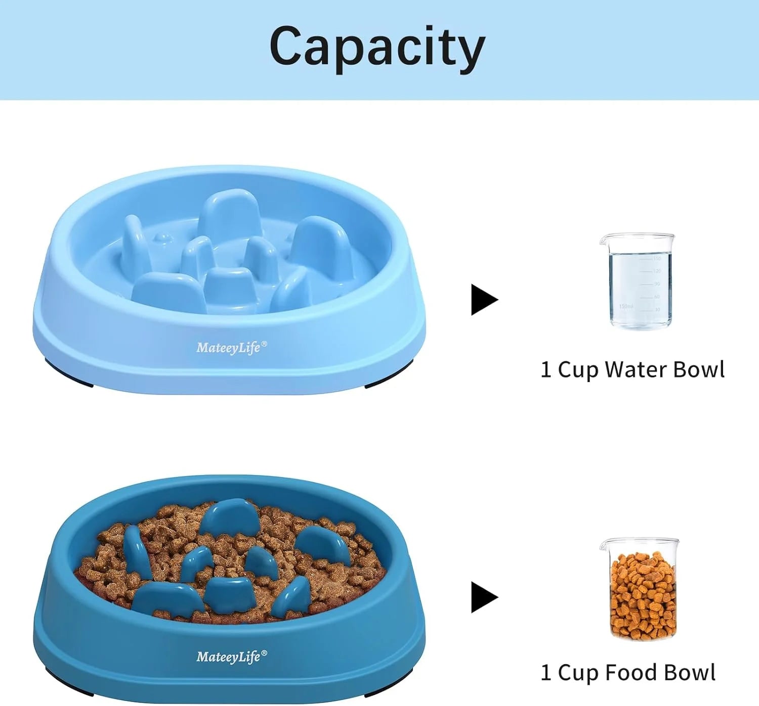 Slow Feeder Dog Bowls (2 PCS): A Set of 2 slow-feeding dog bowls designed to encourage a slower eating pace. Features raised ridges and maze-like patterns that make dogs work for their food.