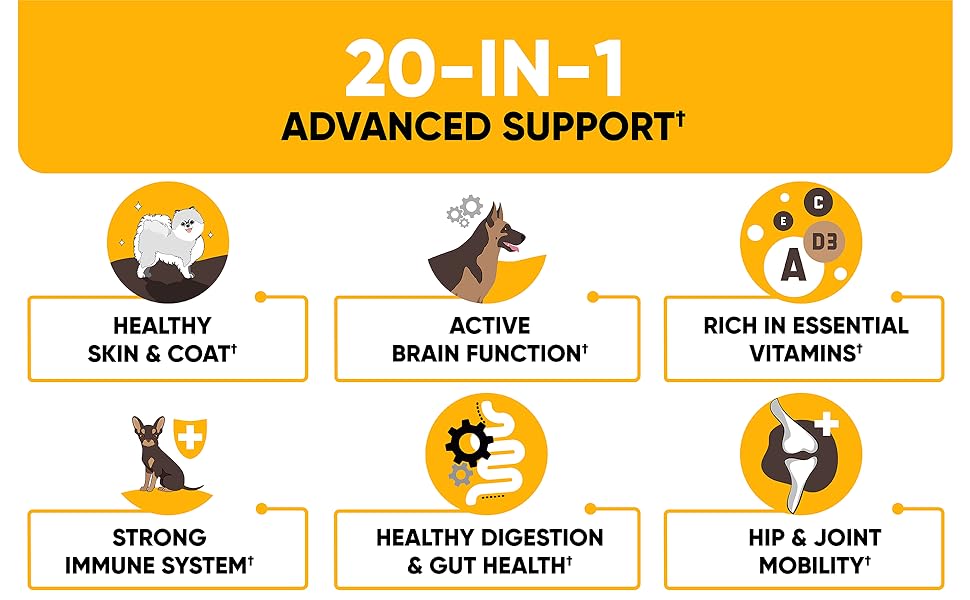 Formulated by vets, each chew is designed to strengthen immunity, improve nutrient absorption, support healthy skin and coat, and maintain digestive comfort. It's a tasty, stress-free way to keep your dog feeling their best—inside and out.